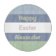 Pâques horizontales bleu clair, vert clair et bleu poussiéreux rayé motif et texte personnalisable : Bonne Pâques. Cliquez sur Modifier pour modifier le texte et le nom à votre goût,