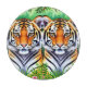 Un jeune tigre audacieux et vibrant dans une jungle tropicale dense et fleurie.