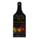 Plateau de coupe en verre noir en forme de pagaie avec une citation qui dit : "Le meilleur des temps est toujours trouvé quand les amis et la famille se rassemblent autour. Il présente une photo macro de tomates rouges et vertes avec un arrière - plan brun et gris muet. Juste assez de couleur pour égayer la cuisine et ajouter une atmosphère chaleureuse et accueillante. Parfait pour servir ou couper. Plusieurs produits assortis disponibles.