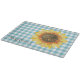 Un charmant design de style campagnard/fermier présente un fond à carreaux gingham bleu avec une grande fleur de tournesol aquarelle épanouie