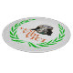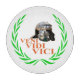 Casque militaire romain ancien en cuivre métallique. Texte Veni, Vidi, Vici. Dessin d'une couronne de laurier vert autour. Carré format produits et cadeaux