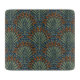 Cette planche à découper en verre dispose d'un ventilateur de pétoncles en vert d'olive terreux, rouille sur bleu marine pour un look bohème.