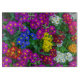 Une photo colorée de primroses imprimée sur une planche à découper en verre.