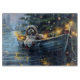 Jetez un coup d'oeil à la magie de la saison des Fêtes avec cette illustration magnifiquement détaillée, montrant un chien fier assis dans un bateau à la décoration festive, glissant à travers un lac serein de Noël. Les lumières scintillantes des pins voisins se reflètent dans l'eau, projetant une lumière chaude et festive qui renforce l'ambiance cosy. Des ornements pendent des côtés du bateau, tandis que des lanternes brillantes éclairent le chemin, créant une scène qui capture l'essence véritable de la chaleur et de la joie de Noël. Cette oeuvre nostalgique apporte une touche de magie de vacances à tout espace, parfait pour ceux qui chérissent l'esprit de la saison.
