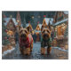 This festive design captures the joyful spirit of the holiday season, featuring an adorable dogs.Nestled in a winter wonderland, complete with a decorated Christmas tree, and beautifully wrapped presents. Snowflakes gently fall, adding a magical touch to the scene, while the vibrant colors of the holiday decorations create a warm and cheerful atmosphere.