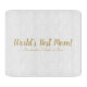 World's Best Mom personnalisées script personnalisé texte élégant joli plateau de coupe en verre. Texte en faux or entièrement personnalisable, arrière - plan blanc. Grand cadeau pour la Fête des Mères vous pouvez customiser le texte du bas avec les noms des membres de votre famille, enfants, enfants, etc