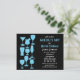 Célébrez la future mariée avec style. Une variété de cocktails, de bières et de verres à vin en silhouette bleu clair contre un riche arrière - plan noir rayé de colonnes de points blancs pour faire un effet pluvieux. Votre texte customisé se distingue en bleu et blanc avec d'autres informations optionnelles imprimées sur le dos. Disponible en couleurs alternatives.