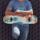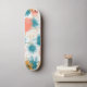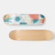 Ce jeu de skateboard présente un motif abstrait animé aux formes audacieuses et dynamiques dans les tons turquoises, coralliens et dorés. Le design dégage de l'énergie avec ses motifs d'explosion ludiques, créant un impact visuel frappant. Parfait pour les patineurs à la recherche d'une esthétique moderne et dynamique, ce pont mêle art graphique et style contemporain pour se démarquer dans les rues.
