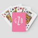 Nos belles cartes à jouer attendent votre monogramme. Considérez-les comme un cadeau d'anniversaire ou de vacances pour tout le monde dans votre pont ou club de poker. Ce jeu de cartes à bicyclette est doté d'un arrière - plan rose doux avec un monogramme de typographie blanche.