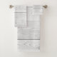 Les planches en bois blanches et grises de ferme rustique impriment des serviettes de bain.