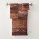 Les planches en bois de ferme de grange rustique de brun foncé impriment des serviettes de bain.