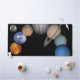 Haut en bas : Mercure, Vénus, Terre avec Lune, Mars, Jupiter, Saturne, Uranus, Neptune.