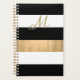 Elégant noir, couleur or et blanc coloré quotidien / planificateur mensuel fait dans un motif rayé audacieux. Personnalisez le monogramme d'une lettre pour répondre à vos besoins.