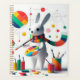 Découvrez un monde magique mignon où l'art prend vie avec notre charmant graphique en lapin blanc 3D ! Cet adorable lapin tient un pinceau et une palette colorée, ornée d'un long foulard arc-en-ciel autour du cou. Autour du lapin se trouvent divers accessoires de peinture comme des crayons et des pinceaux, le tout dans des teintes vibrantes assorties au foulard du lapin. Placée contre un arrière - plan blanc vintage, cette scène enchanteresse est présentée sur un planificateur, prêt à inspirer votre créativité chaque jour ! Au fond du planificateur, vous découvrirez une surprise - le même petit ami aux oreilles pointues qui semble penser qu'il est Kandinsky.