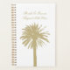 Livre de planificateur de mariage traditionnel de plage avec calendrier. Design modèle élégant avec silhouette chic de palmier. Une partie du set correspondant pour la fête d'été / destination mariage. spirale dorée avec imprimé beige de sable.