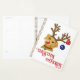 Cute Fox Red Labrador Retriever est habillé dans ses vacances nez rouge Rudolph, des bois de rennes et col de la cloche, avec pendaison décorations Peace et Joy. Customisez ce design avec votre salutation de vacances préférée. Les modèles Black and Yellow Labrador Retreiver et Border Collie sont également disponibles.