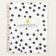 Un planificateur pour les enseignants avec un arrière - plan à pois à l'avant et à l'arrière. Personnalisez le texte au centre avec une illustration de pomme jaune néon.