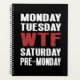 Un planificateur pratique avec une couverture qui embrasse le triste fait de la vie qu'après lundi et mardi, le reste de la semaine de travail est WTF, et le samedi est juste un souffle loin de la folie du pré-lundi. Parfait pour ceux qui veulent rester organisés sans prendre la vie trop au sérieux !