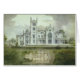 Illustration architecturale vintage représentant une maison ou un palais français avec un plan d'étage du rez-de-chaussée comprenant les pièces intérieures telles que la salle à manger, la bibliothèque, le bureau et les vérandas.