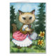 La plantation de l'original de jonquilles est la" aquarelle 2.5x3.5 et l'encre. Petit Kitty plante un jardin de jonquille à sa maison de plage. Elle ombrage ses yeux avec un grand chapeau de paille - le soleil est lumineux aujourd'hui. Art par Carmen Medlin.