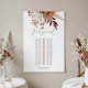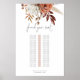 Rust Terracotta Florals Script moderne Single Table Mariage Seating Chart Trouvez votre siège est dans un script stylé et le reste du texte que vous pouvez facilement personnaliser. Un bouquet de fleurs couleur automne en terre cuite et crème est au sommet.