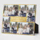 Créez votre propre plaque photo de famille avec six positions photo. Des photos sont accrochées au-dessus d'un arrière - plan métallique en or faux jaune. Police manuscrite pour le nom de famille. Beaucoup de place pour les noms longs. Modifiez également la saison et l'année des fêtes. Pour personnaliser cette plaque, cliquez sur "personnaliser ce modèle" puis modifiez les champs fournis. Les photos de modèle ne sont destinées qu'à des fins de démonstration et doivent être remplacées avant de commander ce produit. Plaque Deluxe Jaune Or Six Modèles photo.