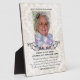 Une façon belle et intemporelle de se souvenir de votre proche avec une plaque photo mémorielle personnalisée. Téléchargez votre propre image et modifiez tout le texte sur le devant pour obtenir un souvenir unique que vous et votre famille chérirez. Le poème sur cette plaque dit : Nous pensons toujours à vous, nous parlons encore de vous, vous n'avez jamais été oublié, et vous ne le serez jamais. Nous vous gardons près de nos cœurs, et vous y resterez, pour marcher et nous guider à travers nos vies jusqu'à ce que nous nous retrouvions. Le verset biblique en bas nous rappelle que nous avons de l'espoir, et que nous serons à nouveau unis avec ceux qui sont allés être avec le Seigneur Jésus-Christ.