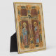 Christ Crucified Medieval art Page d'un manuscrit illuminé représentant Jésus sur la Croix avec Marie et Saint Jean de chaque côté