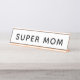 Plaque de bureau classique noir et blanc "Super Maman". Fait un excellent cadeau pour la fête des mères ! Peut être entièrement personnalisée avec votre texte et vos couleurs.