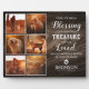 Plaque commémorative personnalisée pour animal de compagnie présentant un fond à effet de bois rustique, un collage de 6 photos de votre animal bien-aimé, une citation de sympathie qui dit "votre vie était une bénédiction, votre mémoire est un trésor, vous êtes aimé au-delà des mots et manqué au-delà de toute mesure", une empreinte de patte avec un cœur d'amour, le nom de votre chien ou chat, et leurs dates de naissance et de décès. Cette plaque commémorative pour animal de compagnie est facile à personnaliser et constitue le cadeau de sympathie idéal pour vous, votre famille ou vos amis pour honorer ces animaux de compagnie spéciaux qui ne sont plus parmi nous.
