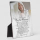 Cette plaque photo en marbre en souvenir affectueux avec poème est une façon intemporelle d'honorer et de chérir la mémoire d'un être cher. Avec un fond en marbre doux présentant des veinures subtiles, cette élégante plaque offre un espace pour une photo chérie en haut, suivie d'un texte de mémorial personnalisable. Le design met en valeur le poème classique de souvenir "Ne restez pas debout près de ma tombe et pleurez" de Mary Elizabeth Frye, que vous pouvez remplacer par le poème ou la prière de votre choix, affiché dans une typographie élégante pour un effet sincère. Parfaite comme cadeau de condoléances, souvenir de funérailles ou pièce d'exposition lors d'une célébration de la vie, cette plaque photo personnalisée apporte réconfort et souvenir à la famille et aux amis. Son design en marbre moderne et intemporel se fond parfaitement dans n'importe quel décor, du traditionnel au contemporain, ce qui en fait un hommage polyvalent. Qu'elle soit placée sur une cheminée, une étagère ou un bureau, elle sert de rappel durable de l'amour, des souvenirs chéris et de l'héritage durable. Cette plaque est conçue pour être personnalisée avec le nom de votre être cher, les dates et un texte personnalisé facultatif, ce qui en fait un mémorial unique et significatif. Son