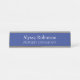 Cette plaque de nom élégante est facile à personnaliser en utilisant le modèle de personnalisation en ligne avant de commander. Il y a des champs de texte pour un nom et un titre de travail (ou un nom et un département/équipe si vous préférez). Si vous souhaitez effectuer des ajustements avancés comme changer l'arrière - plan bleu en couleur de l'entreprise, cliquez sur l'option "Modifier l'outil de conception" pour "Customiser plus loin". La plaque nominative est disponible dans deux styles (comme une plaque de nom de bureau ou comme une plaque de nom de porte) et un choix de finitions et de tailles de couleur.