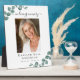 Cette belle plaque d'eucalyptus peut être personnalisée avec une photographie de votre proche ainsi que son nom et peut être affichée comme un panneau de bienvenue pour votre Célébration de la vie ou service funèbre, ou à la table du livre d'or.