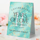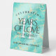 Ajoutez une touche spéciale aux célébrations du 11ème anniversaire du mariage turquoise avec ce panneau de table design ! Des lettres élégantes sur un marbre jaune et un arrière - plan bleu verdâtre ajoutent une touche mémorable à cette occasion spéciale et à cette étape importante. Customisez avec les noms des couples, les dates du mariage et les messages de félicitations. Remarque : cette conception a été optimisée pour une utilisation verticale du portrait. Design © W.H. Sim. Voir plus sur zazzle.com/expressionsoccasions