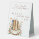 Comptez à rebours jusqu'au "oui" dans un style conte de fées avec ce panneau sur socle fantaisiste inspiré des livres d'histoires, qui indique "60 jours avant qu'elle ne dise oui". Orné de délicates fleurs sauvages, de florales aquarelles rose pâle et d'un charme vintage de livre d'histoires, ce panneau présente un design en rondelle de bois rustique (anneau d'arbre/tronc) - le mélange parfait d'élégance bohème et de magie de conte de fées.