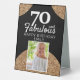 70 et Fabulous Gold Parties scintillant Photo 70th Birthday Table Tente Sign. Célébrez un jalon spécial avec ce panneau unique de 70e anniversaire de fête. Ce panneau de table chic présente une parties scintillant dorée, et du texte "70 and Fabulous" sur un arrière - plan noir pour un look vraiment unique. Parfait pour toute fête d'anniversaire, ces panneaux feront que tout le monde se sentira spécial ! Ajoutez votre photo, nom et âge.