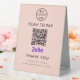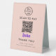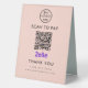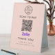 Professional Zelle QR Code Scan to Pay Logo Blush Pink Boost vos options de paiement sans contact avec votre entreprise avec ce professionnel Zelle QR code scan to pay logo Table Tent Sign. Élégant et élégant, ce panneau est parfait pour l'affichage à votre comptoir de caisse, table de restaurant ou partout où les clients peuvent facilement scanner et payer. Customisez le design avec votre logo d'entreprise et personnalisez-le avec un message.