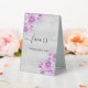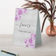 Plaque De Table Anniversaire argent rose violet fleurs faveurs