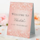 Un signe de bienvenue pour une fête d'anniversaire girly et glamour de 21e (ou tout âge). Un arrière - plan orange dégradé décoré de faux éclats de parties scintillant. Personnalisez et ajoutez un nom et 21 ans.