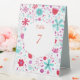 Aquarelle botanique moderne de fleurs sauvages d'aqua bleu et violet sur un arrière - plan blanc. Coordonner la carte de numéro de table recto verso avec le texte qui peut être modifié en fonction de votre célébration.