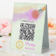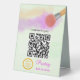 Panneau de piédestal pour le client de payer pour les caractéristiques de maquillage de l'artiste maquiller brosse avec quelques couleurs. #maquillage #makeupartist #beauté #beautymakeup #brush #makeupbrush #color #violet #green #cream #qrcodepay #pedestalsign