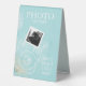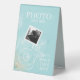 Demandez à votre invité d'accrocher une photo et de laisser un message avec ce panneau amusant turquoise de table d'aquarelle. Customisez avec une photo du couple mariage.
