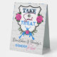 Célébrez en style avec nos Armes à feu ou notre Signe de Faveur Rose avec un badge blanc, des trous de balle, et arrière - plan de brique blanche! 💖 💙 Le design rose et bleu ludique, avec le texte "Take a Sweet Treat" à l'intérieur du badge, est accentué par des roses roses et des fusils bleus, ce qui le rend parfait pour les couples militaires et policiers. 🌹 🔫 Idéal pour les baby showers de révélation de genre, ce panneau de promotion personnalisable ajoute une touche unique et mémorable à votre journée spéciale ! 👶 🎉 ©2024 Miss Sassy Party Designs.