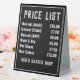 Tarif sur mesure pour un salon de coiffure ou un salon de coiffure. Modifiez les prix comme vous le souhaitez. Affiche jusqu'à 6 articles et prix. Noir et blanc. Les prix sont affichés de part et d'autre.