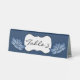 Ce panneau de tente de table présente un arrière - plan bleu marine profond avec un cadre fleuri élégant flanqué de deux fleurs de lotus bleu poudre. Un exemple de texte se trouve à l'intérieur du cadre que vous pouvez customiser avec vos propres numéros de table ou d'autres informations, de sorte que les sièges peuvent aller plus facilement à votre mariage sur le thème du printemps. N'oubliez pas de consulter la collection Exquise Lotus in Blue pour trouver d'autres produits, y compris des invitations, des livres d'invités, des serviettes et même des ballotins, avec des modèles assortis qui permettront un mariage vraiment coordonné ou un événement spécial.