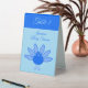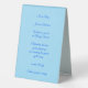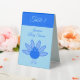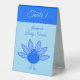 Ce magnifique panneau de tente de table de réception Baby shower présente une image art numérique d'un mignon bébé bleu Thanksgiving Turquie. La Turquie a un corps bleu vif avec des plumes de queue bleues qui collent. Il a des jambes bleu pâle et beak et de mignonnes paupières bleu pâle. Un design mignon pour célébrer un bébé garçon, surtout à Thanksgiving. Il y a du texte personnalisé pour que vous puissiez inclure un message.