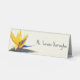Cartes de lieu tentes pour oiseaux de paradis avec nom modèle. Ecru, des panneaux en plastique se tiendront à chaque endroit. Ajoutez le nom de chaque invité en texte gris imprimé à côté d'une jolie fleur hawaïenne exotique jaune.