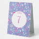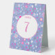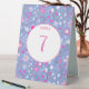 Motif de fleurs botaniques botaniques modernes peintes à la main, rose et blanc, sur un arrière - plan bleu peri pour un look d'été frais et heureux. Coordonner la carte de numéro de table recto verso avec le texte qui peut être modifié en fonction de votre célébration.