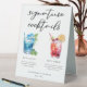 Ce panneau de tente de table de marque côtière chic propose une typographie noire simple au-dessus de 2 boissons balnéaires et leurs ingrédients pour votre bar de mariage de plage. Un joli Blue Lagoon et Dirty Shirley ou un dessin à la cerise ajoutent une touche cool à votre menu du bar. Complétez avec les noms du couple et la date de leur réception.