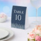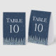 A beautiful table number card for your rustic winter wedding tables with a snow covered forest at night in navy blue and white.
